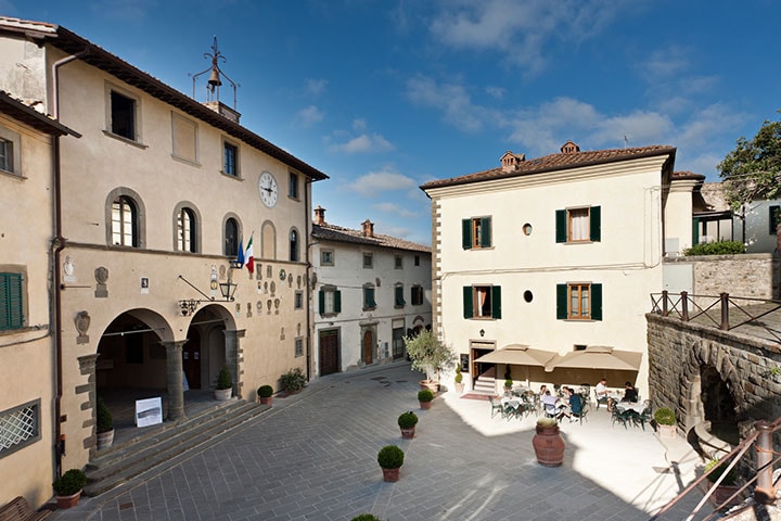 One of the most spectacular medieval villages in the Chianti Classico area, perched high above the vineyards, with 360 degree enchanting views of surrounding areas.